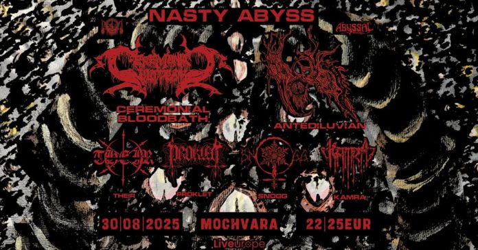 Nasty Events i Abyssal Booking u suradnji s klubom Močvara u tmini kraja kolovoza, kada se ljeto povlači pred sjenama jeseni, a zrak postane gust od tame, otvoriti će vrata za jedan od najmračnijih i najbeskompromisnijih glazbenih događanja godine. Šest entiteta, šest vizija kaosa, smrti i transcendencije, okuplja se u noći koja neće imati zore.