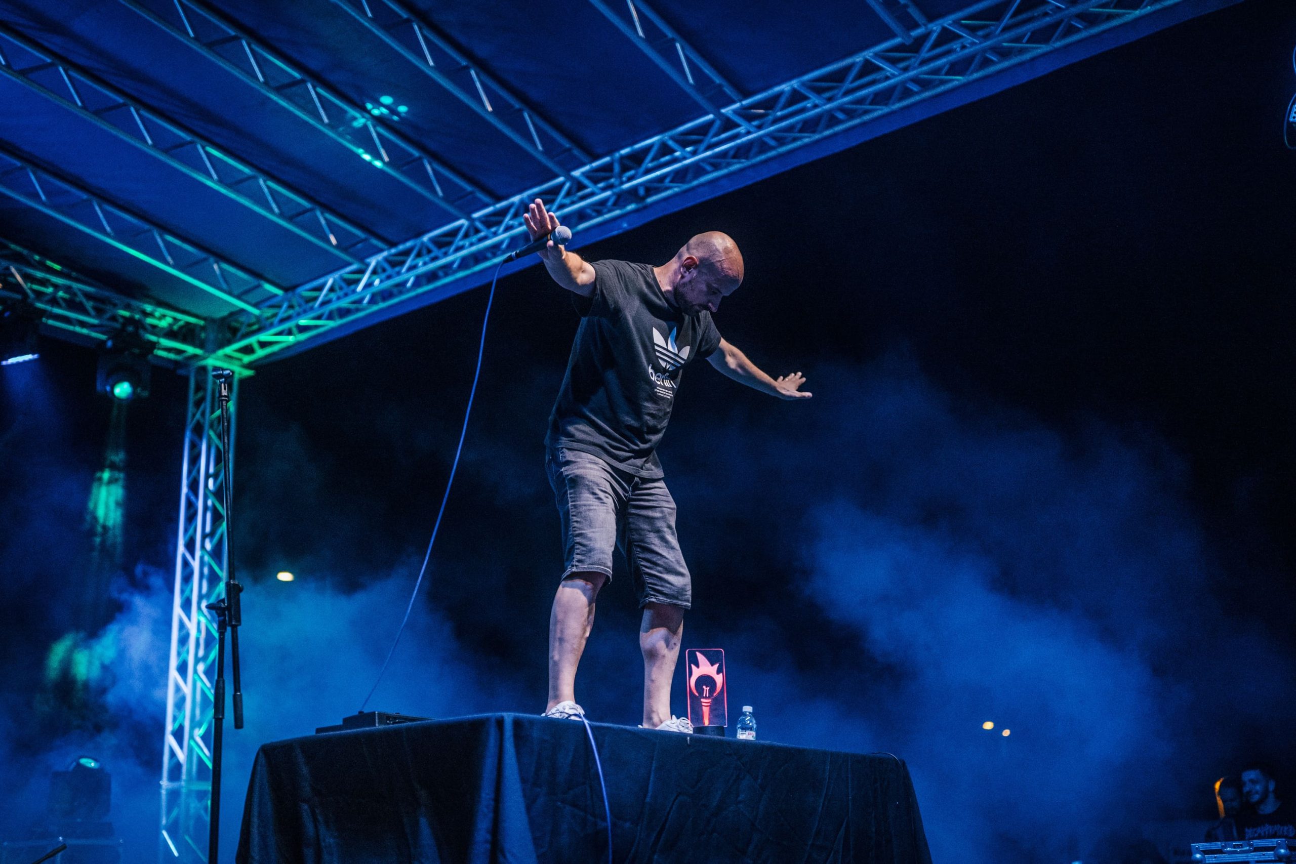Puno Hušnjakovo uzbuđeno je dočekalo prvog headlinera. Vojko V lako je zagrijao inače malo hladniju zagorsku publiku, pjesme su se orile dok je Vojko skakao po stolu, izvlačio ljude iz publike, te na kraju odlučio da je najbolji način za ostvariti vezu s fanovima sam ulazak među njih. Nakon Vojka na pozornicu su se popeli Krankšvester, i publika je eksplodirala. Od starih hitova, do novijih pjesmi, uz Švestere su pjevali i stari i mladi. Užarena atmosfera na “Hušu” savršeno je odgovarala vrućoj ljetnoj večeri i početku praznika, te nas navodi na pitanje što još možemo očekivati od udruge Krapinjon u budućnosti!