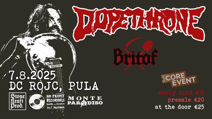 Nastavlja se niz izvrsnih koncerata u pulskom DC Rojc. U četvrtak, 7. kolovoza u Monte Paradiso stiže jedan od najistaknutijih sastava sludge-doom usmjerenja na svijetu, kanadski Dopethrone! Podršku će im pružiti slovenski sludge trio Britof.