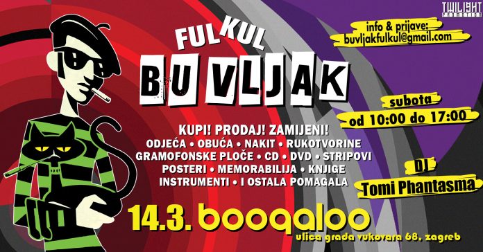 Ako posjedujete kolekcije kul odjeće, obuće, nakita ili drugih modnih dodataka, umjetnina, knjiga, antikviteta, svijećnjaka, ogledala, lampi, bicikala, šivačih mašina ili pak stvarate vlastite dizajne i kreacije, pozivamo vas da nam se pridružite u subotu, 14.03.2026., na Ful Kul Buvljaku. Uz klasični buvljak, Ful Kul Buvljak nudi i poseban prostor u maloj dvorani kluba Boogaloo namijenjen prodaji gramofonskih ploča, CD-ova i ostalih nosača zvuka i slike, postera, stripova, instrumenata, slika, knjiga te ostalih predmeta iz glazbene i filmske memorabilije.